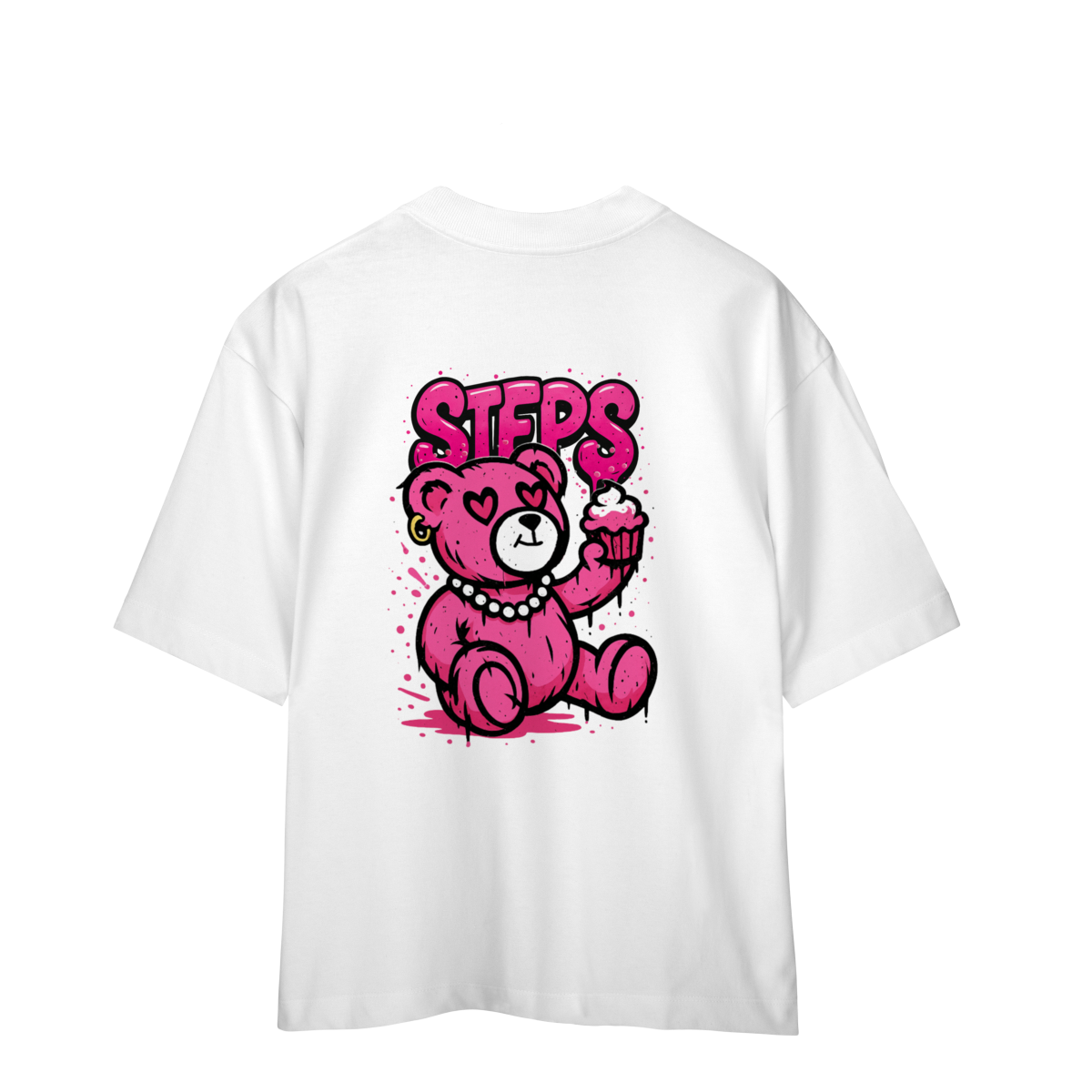Oversized T-shirt em algodão premium branco, trazendo a versão feminina do icônico graffiti bear.